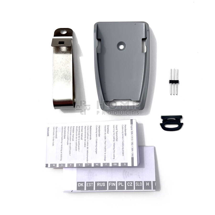 Please note: this remote is available with a frequencie of 868 and 433 MHz. Those frequencies are not compatible with each other. When the back of the remote is the same color as the front, it is the 433 MHz one. If the back is darker than the front, it is the 868 MHz remote.